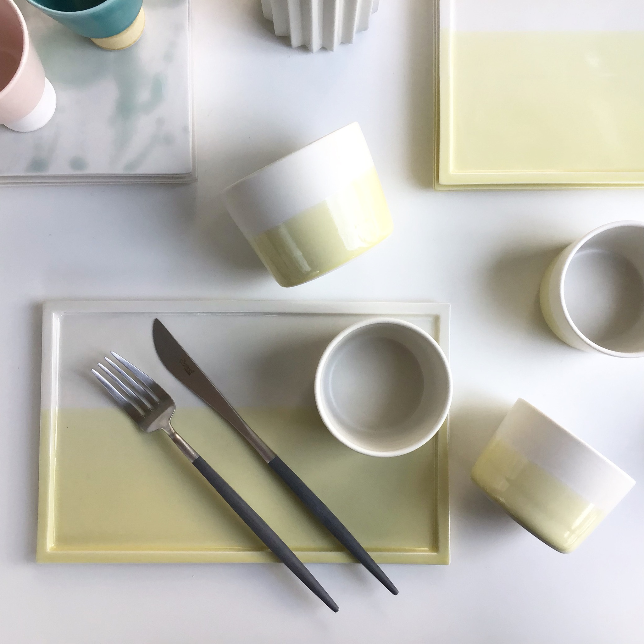 4/26発売予定のHORISONTTIプレート、カップS/MのNANOHANAシリーズをペンシルで先行販売しています。淡い黄色が春らしく気持ちがウキウキする器です。