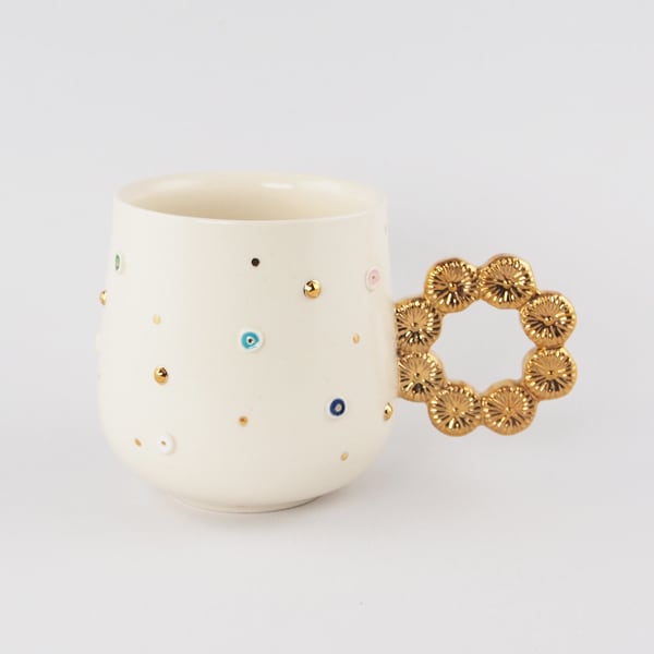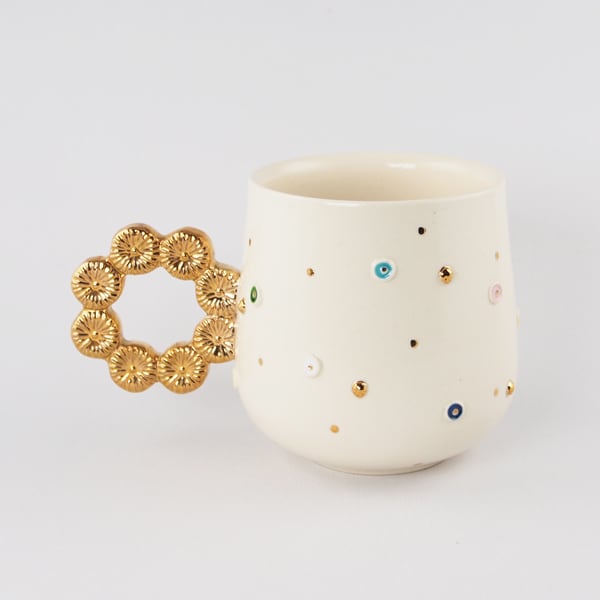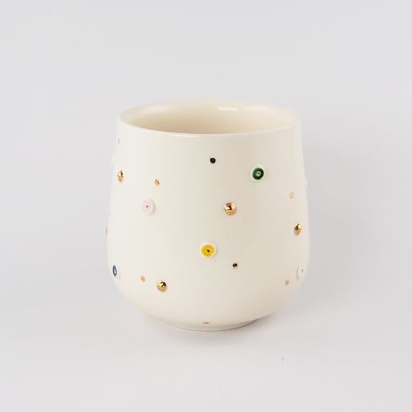 広島の陶芸家、渡邉陽子さんのキラキラ輝く宇宙の星たちのマグカップ