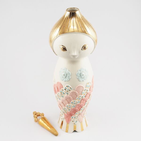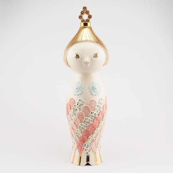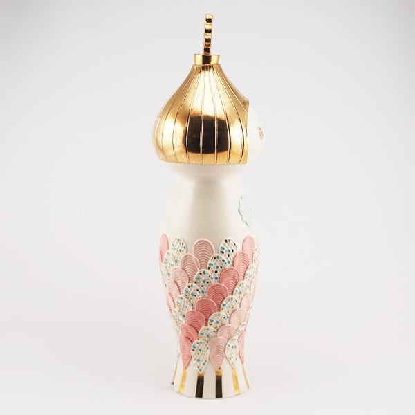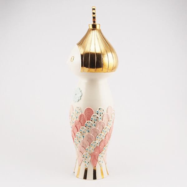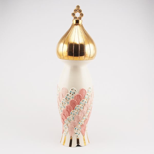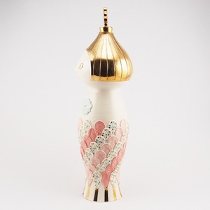 広島の陶芸家、渡邉陽子さんのマーメイドタマネギガールの飾蓋付花入です。