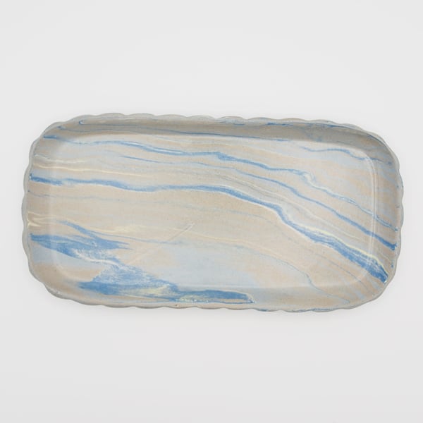 広島の陶芸家、藤川稔さんの長角皿。広島の味比べ味探しのお店「こびと」さんのだし巻き卵用の器としてデザインされたものです。