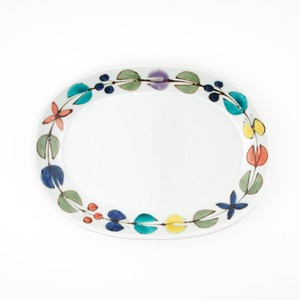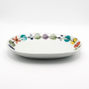 徳永遊心 色絵花繋ぎ 楕円皿