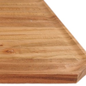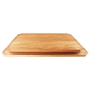 材料は国産桜材。大径の桜材はそう多くなく、貴重な桜材を無駄にしないため、他の製品を作る際に出た細かい板材を使い、貼り合わせて製作しています。高さがあるため、手が掛かって持ちやすく、またテーブルで他の食器と並べても違和感なく溶け込みます。溝があるため焼いたパンは蒸れず、海苔巻きなどもくっつくことがありません。肉汁やソースなども流れ出ません。溝の間隔は、カップやポットを置いてもぐらつくことがない程度です。アウトドアで使うのもおすすめです。